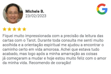 Cada consulta espiritual é única, considerando todos os aspectos da sua vida, como amor, trabalho, saúde e espiritualidade. Ao realizar uma leitura detalhada de tarot, búzios ou cartas, buscaremos juntos as melhores soluções e orientações, sempre respeitando sua individualidade e necessidades pessoais. Com a minha orientação, vamos abrir caminhos e alinhar sua energia para resultados harmoniosos, trazendo paz, clareza e transformação para sua vida. Aqui, mais do que respostas, você encontrará a verdadeira conexão consigo mesmo. Agende sua consulta e inicie o seu processo de cura e autoconhecimento.